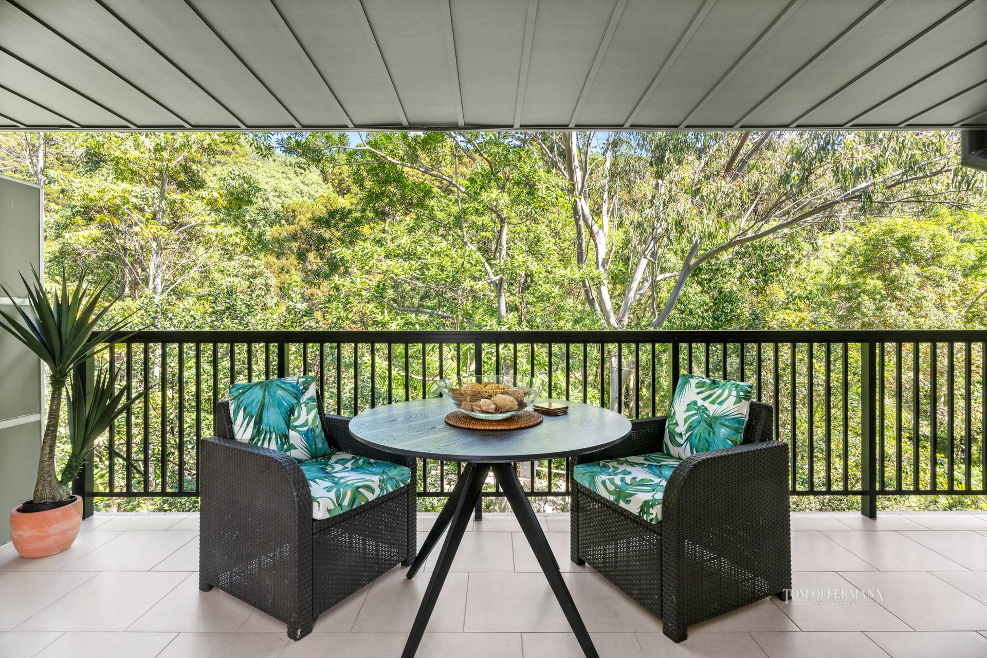 - Terrace: 2.7m x 6m undercover wider than most w charcoal rattan leisure/dining furniture; looks into rainforest