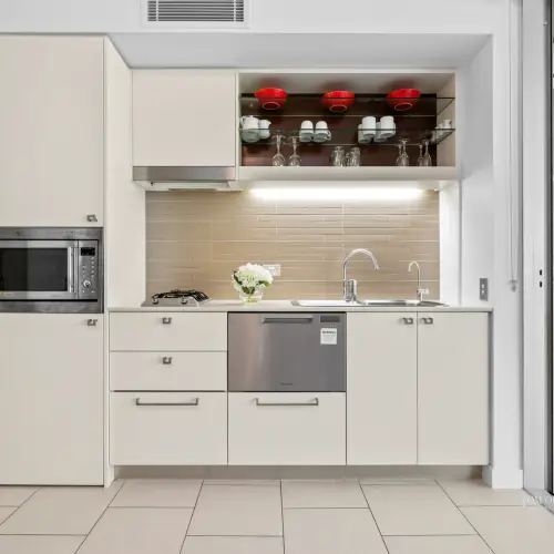 - About: lift access; top floor; nature-inspired fit-out; full refurbishment; living w charcoal-hued carpet, timber framed armchair, fabric covered sofa, Smart TV, colourful artworks; single parking space; ducted aircon/fans; master bedroom w ensuite w dble shower + laundry incl washing machine & dryer & walk-in robe; less than 1 min walk to the lagoon pool