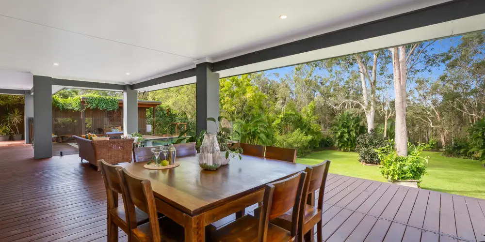 Lush well-established gardens at the front of the home provide an exceptional privacy buffer from the street, and the huge backyard with masses of lawn for children and pets to play has a collection of native trees and tropical palms, and with Moorindil Reserve at rear, embodies a palpable acreage-feel, without the maintenance or isolation from major amenities.