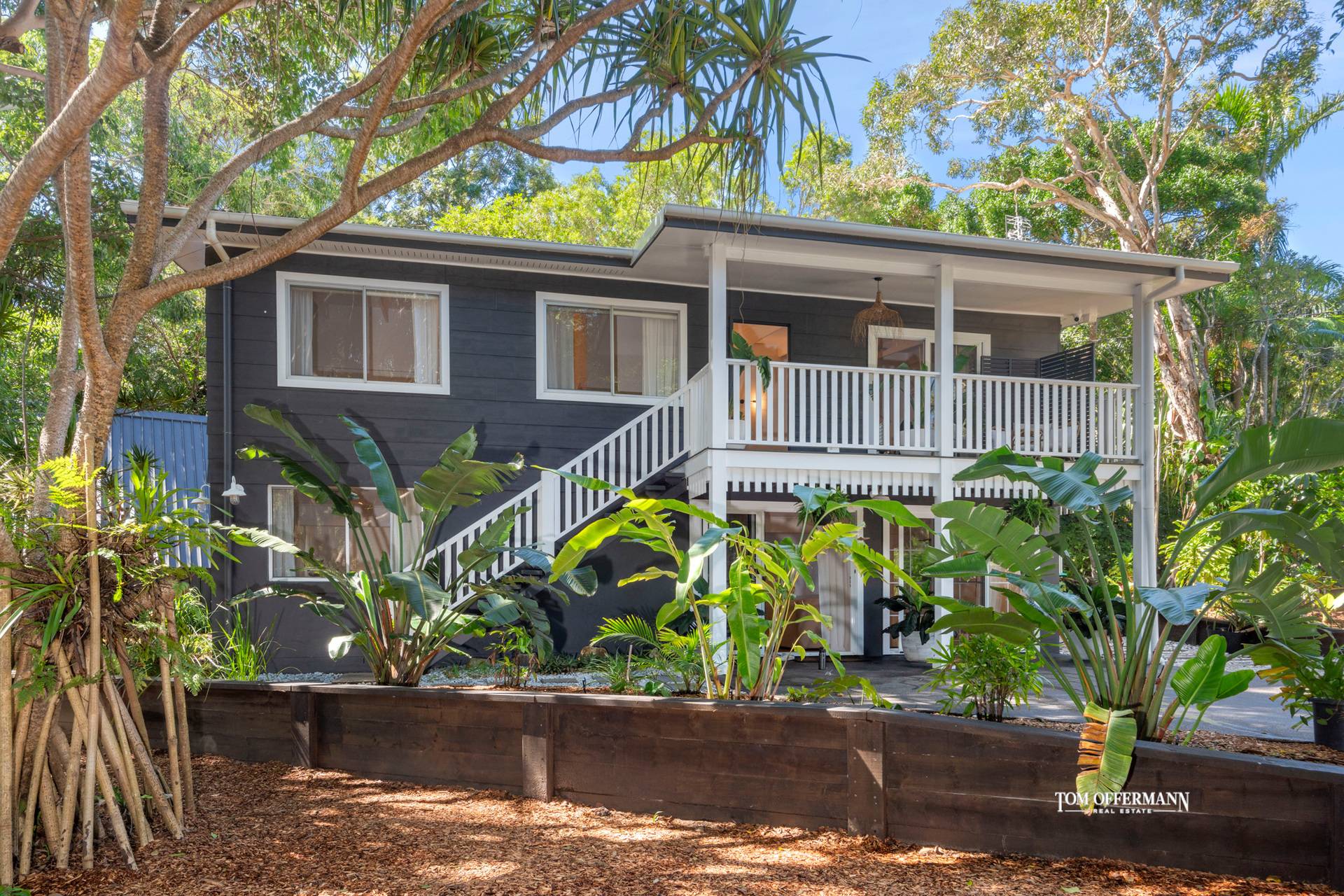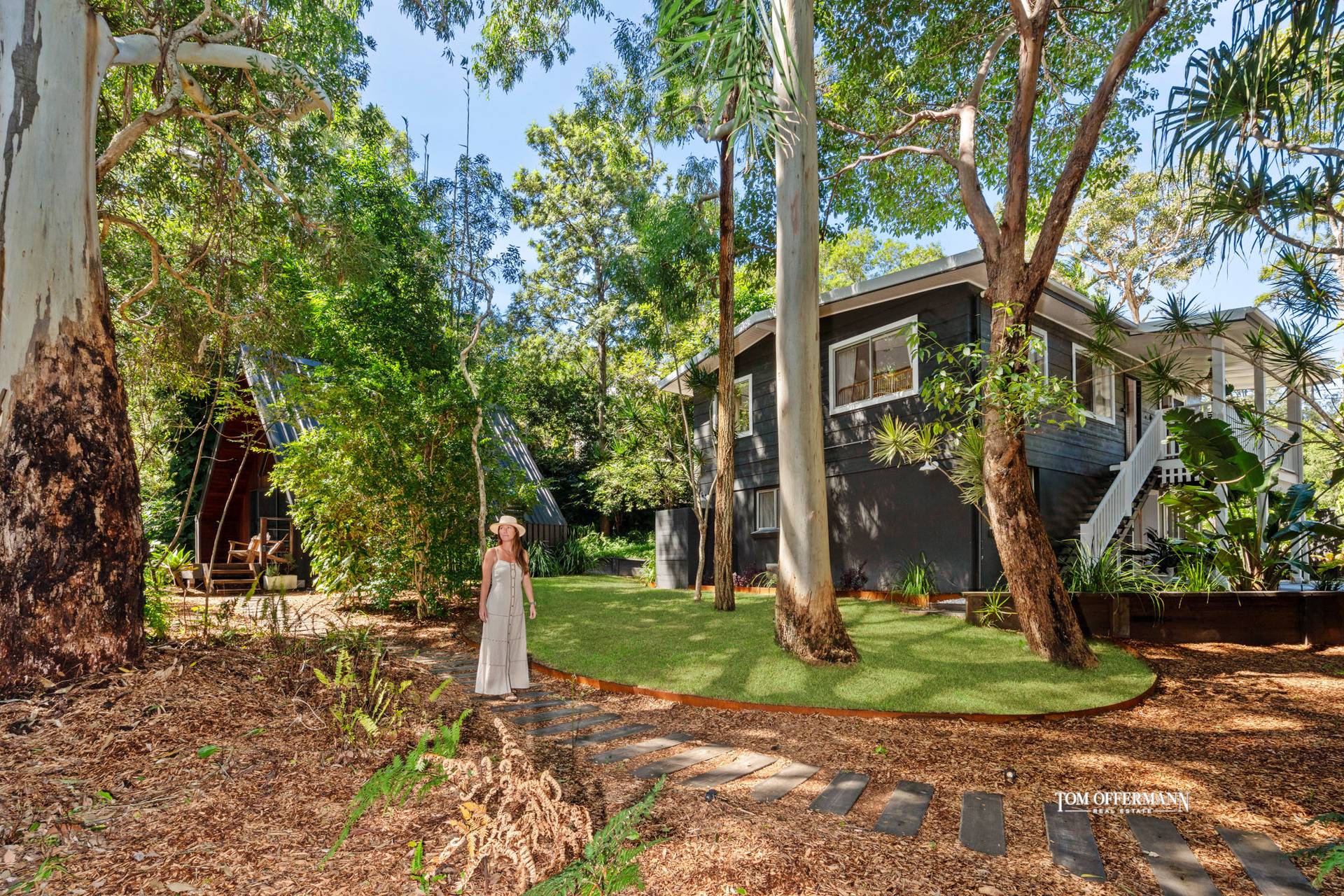 It's all about prime real estate, a site larger-than-most in the near neighbourhood that abuts the Noosa National Park at the rear with koalas in the eucalypts, local bird life on-song, and two dwellings nestled in what could only be perceived as an extension of a flora and fauna-filled park, with meandering pathways.
