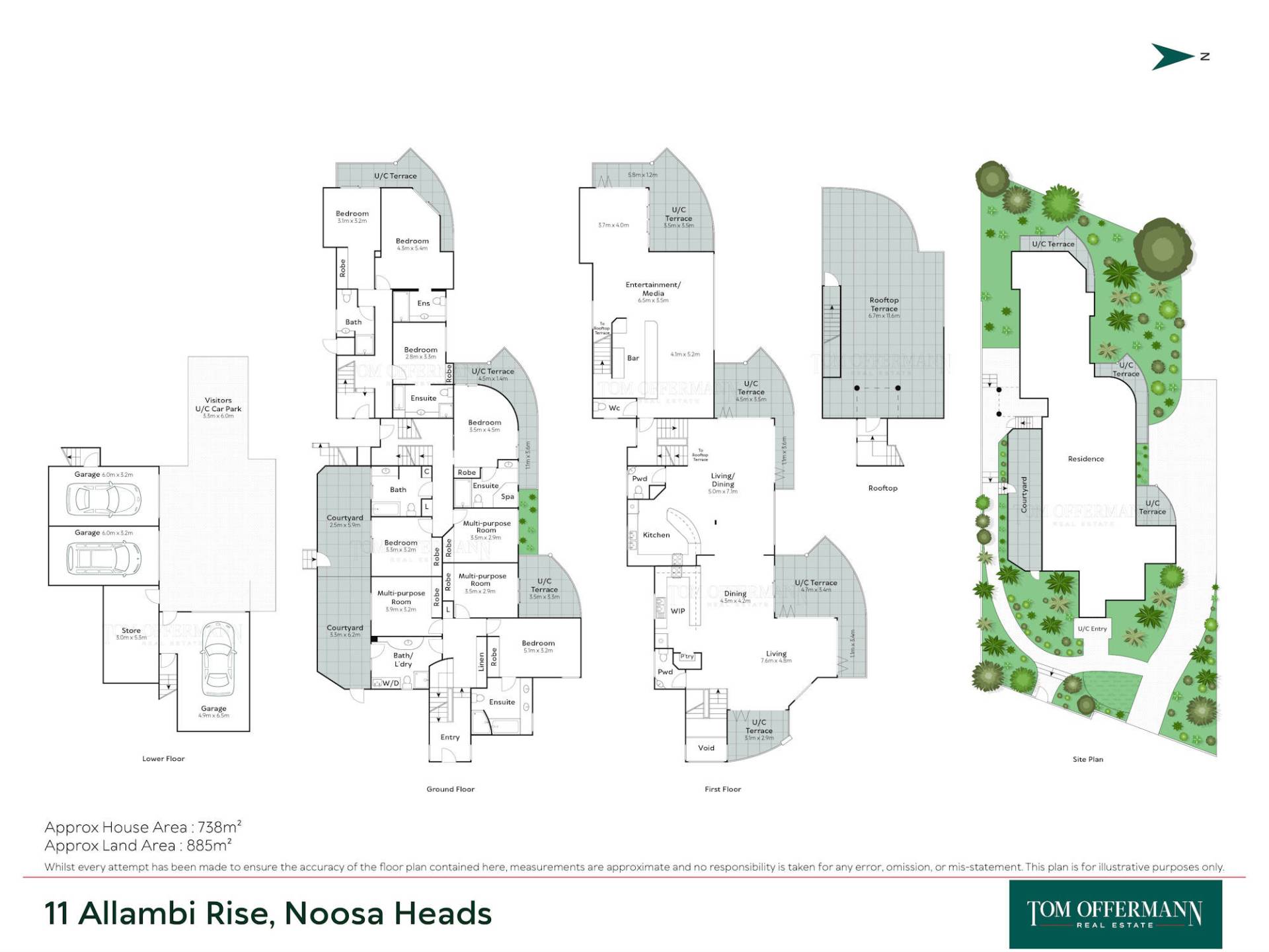 • About: lower level 3xsingle lock up garages & guest carpark + storage room w 3xstorage cages; mid-level w all 6xbedrooms plus 3xmulti-purpose rooms, 3xlaundrys & 2x drying courtyards; top levels w all living/dining + kitchen, bar and butlers; aircon/ceiling fans;