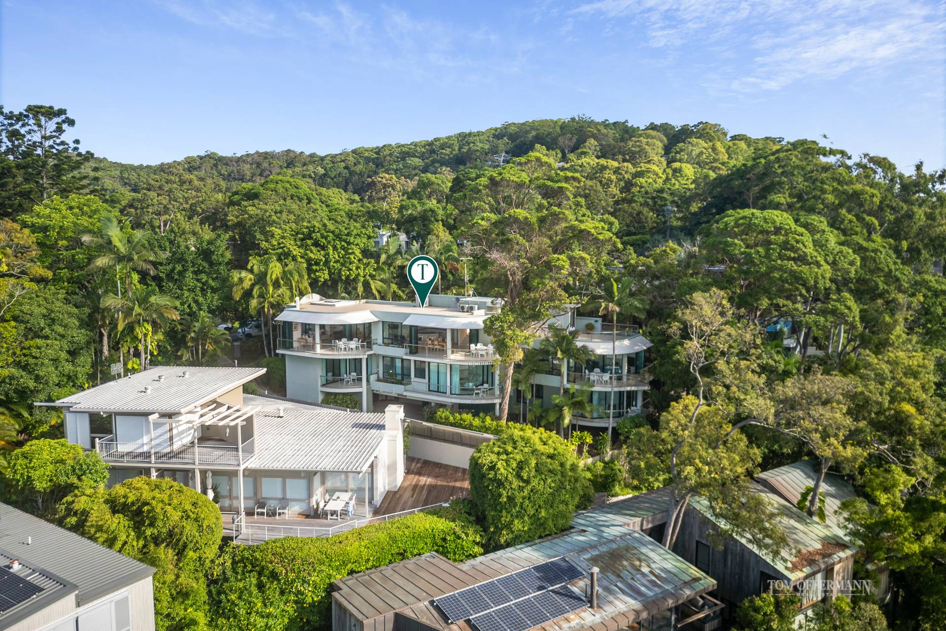 Picture irresistible Little Cove where the Coral Sea meets rainforest, albeit the forever verdant Noosa National Park with its world-class surf breaks. Feel the sea breeze and capture those unparalleled unobstructed views from an expansive rooftop entertaining terrace of the Bimbadeen residence, which is one of only ten properties on the coveted western side of Allambi Rise overlooking Laguna Bay.